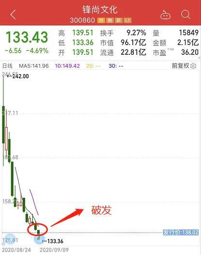 不只是这些新股,近期爆炒的创业板低价股和注册制后的新股,已经出现创业板注册制第一股锋尚文化破发了,发行价为138.02元,如今最新股价为133.43元。