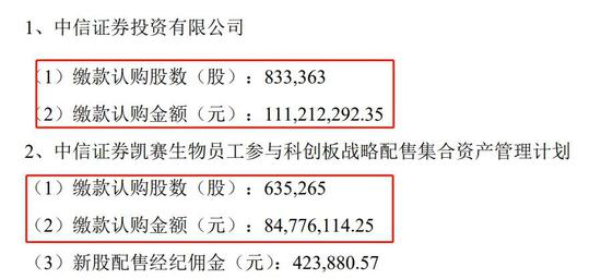 凯赛生物,保荐人、主承销商未中信证券,中信证券战略配售跟投83.34万股,跟投金额为1.11亿元,战投有锁定期,如今已经浮亏2748万元。不过,大家也不用为中信证券担忧,因为他们承销及保荐费合计已经赚了2.62亿元(不含增值税)。