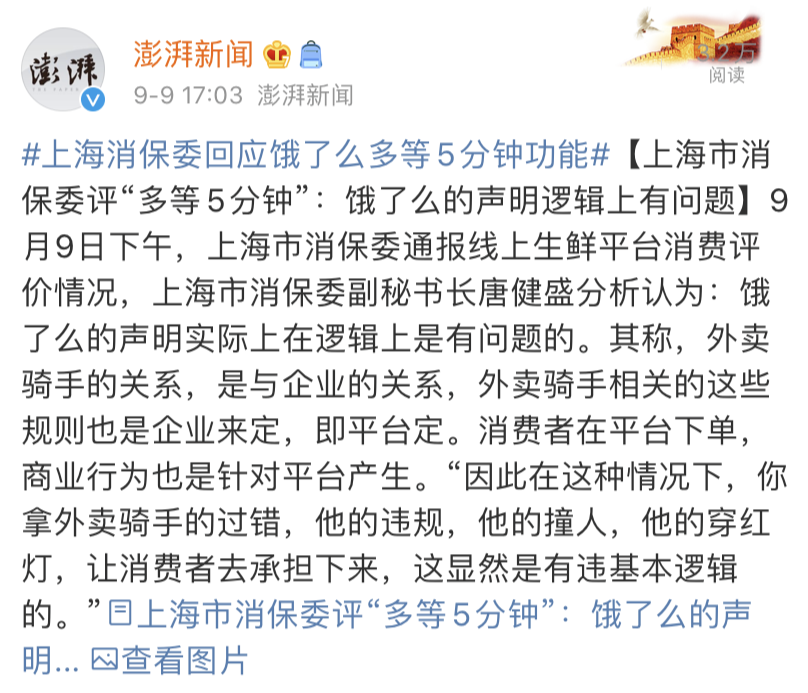 饿了么昨日凌晨回应:将在结算付款时增加“愿意多等5分钟/10分钟”的小按钮,让用户自主选择,以及对部分优秀骑手提供奖励机制和个别订单超时免责。