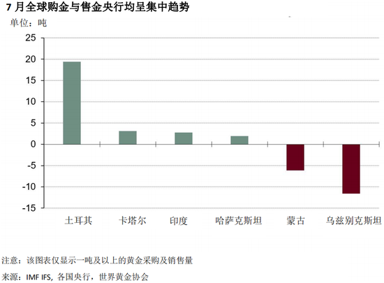 七月,各国央行黄金需求放缓,购金与售金均呈集中趋势