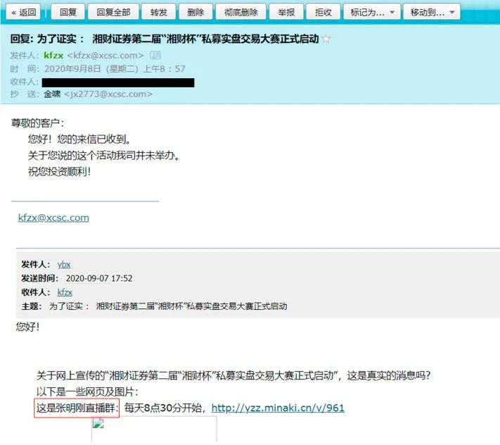 记者发现,已有投资者在知乎发帖揭露这场“比赛”就是骗局:“在光大证券的官网都没有相关信息,希望各位留意!”也有投资者不幸“中招”,回帖道:“被这个大赛骗钱了能追回来么?”