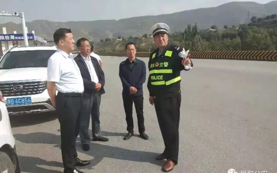2019年9月3日,民和县委常委、政法委书记马生全(左一)慰问执勤民警