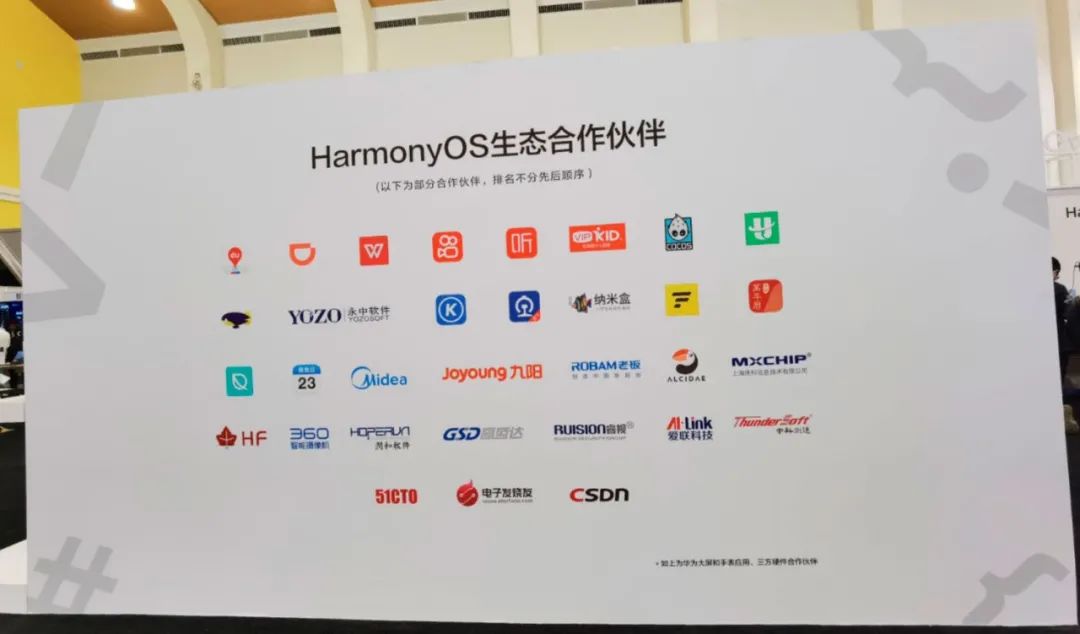 在华为开发者大会的互动体验区,记者看到一面“HarmonyOS生态合作伙伴”墙,美的、九阳和老板电器赫然在目。