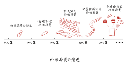 经典的价值投资产生于20世纪30年代,20世纪五六十年代就已经被广泛使用,市场和产业的变化,尤其是科技的快速发展,使得投资人在研究企业时无法停留在实物资产价值、账面价值或静态的内在价值这一层面。“市场先生”“内在价值”“安全边际”这些经典概念有了更多新的含义:更加成熟的市场效率、企业自身的内生动能以及不断变化的外界环境,构成了理解价值投资的新角度。价值投资的内涵和外延都在变化。如果说价值投资的出发点是发现价值的话,其落脚点应该是创造价值。