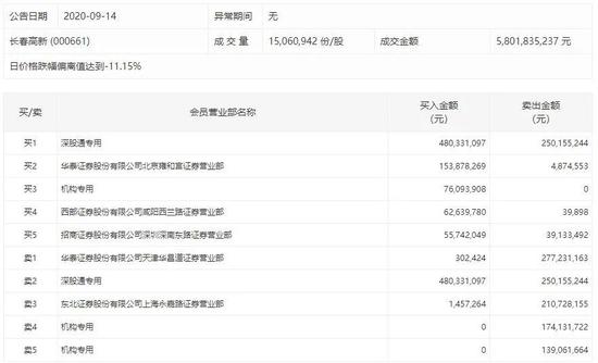 盘后龙虎榜显示,华泰证券天津华昌道营业部卖出2.77亿元,东北证券上海永嘉路营业部卖出2.1亿元,深股通卖出2.5亿元并买入4.8亿元,两机构席位合计卖出3.13亿元。