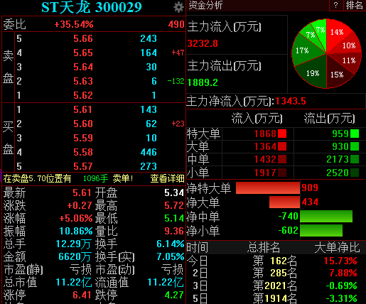 9月15日,创业板首批ST股复牌涨跌不一,截至发稿,ST天龙、ST乐凯涨逾5%,ST网力(维权)跌近2%。