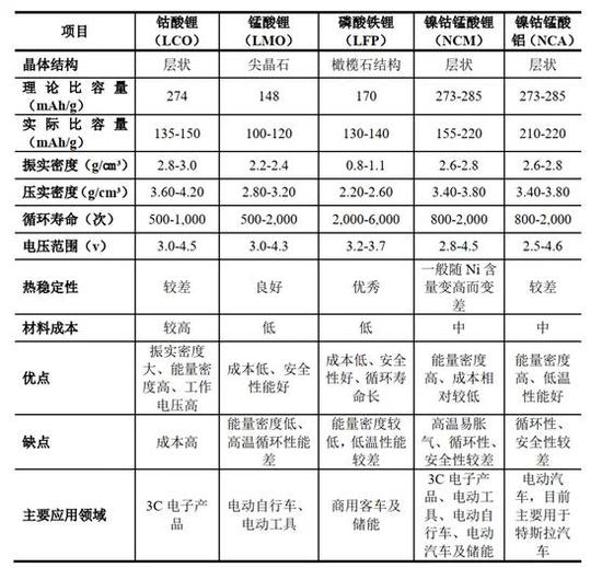 锂离子电池按照正极材料的不同,可分为钴酸锂电池、锰酸锂电池、磷酸铁锂电池、NCM和NCA(镍钴铝酸锂)三元锂电池等类型。