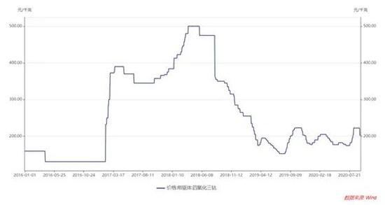 Wind数据显示,2017年度四氧化三钴的价格出现了较大幅度的上涨。从2017年初的130元/公斤,一直上涨至2018年一季度末的500元/公斤,随后四氧化三钴的价格又开始了急速下跌,至2019年三季度初跌落至了150元/公斤左右。