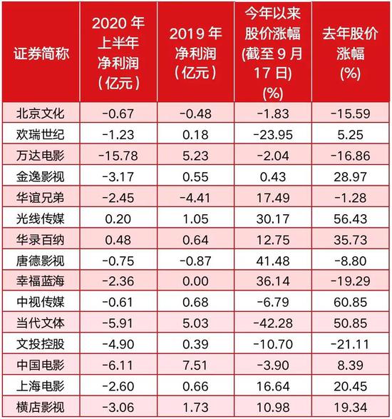 在诸多利好的刺激下,二级市场影视股的表现也颇为活跃:9月16日开盘,幸福蓝海的股价拉升20%,触及涨停板;华纳百录、华谊兄弟和唐德影视等板块内个股同日亦表现不俗。9月 17日,虽然影视板块有所回调,但从各大券商的观点来看,国庆节即将来袭,影视股板块可能会迎来“报复性消费”行情。对此,中泰证券认为,压抑许久的观影需求与疫情导致的出行受限,叠加高关注度内容定档,种种因素交织有望带动电影市场观影人次及票房进一步回暖。