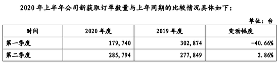 在订单方面,公司 2020 年第一季度新获取订单较2019 年同期下降40.66%,但随着新冠疫情得到有效控制,公司第二季度新获取订单数量较2019 年同期增长 2.86%,销售已经恢复正常。