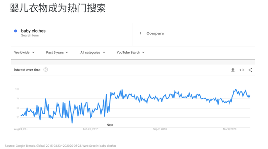 在家隔离期间,父母和孩子们有了更多的接触时间,从谷歌趋势上看,游戏与玩具、婴幼儿衣物、婴儿护理产品等搜索量在3 月份开始明显上升;同时,人们有更多时间与宠物接触、互动、寻求陪伴,这导致宠物护理、宠物家居的搜索量屡创新高,而在此之前,相关商品的销售更多受季节因素影响。