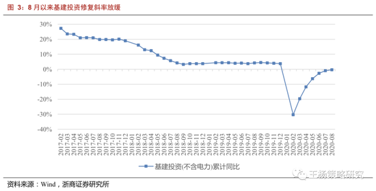 另一方面,就基建投资来看,基建施工的旺季一般是8-10月,进入Q4后基建投资大概率季节性放缓。与此同时,进一步结合基建投资数据来看,8月以来修复斜率显著放缓。