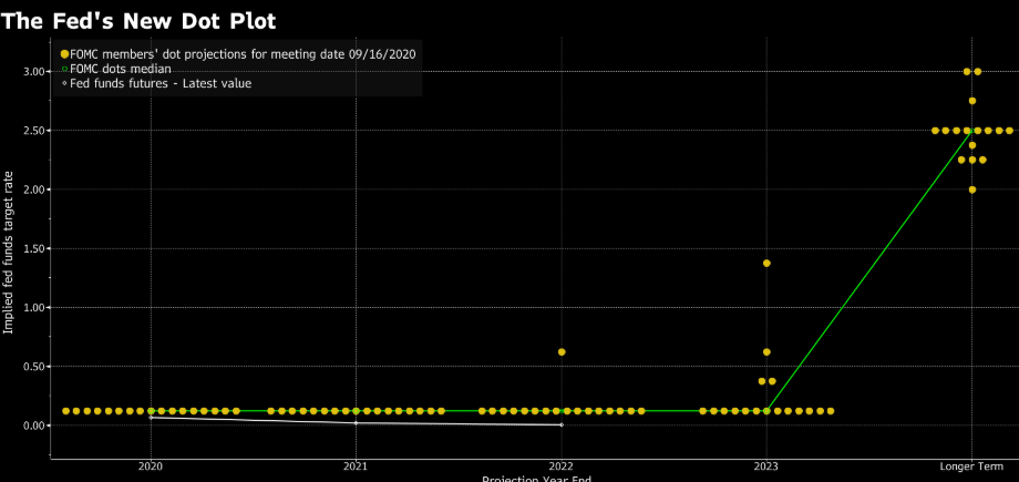 美联储新的点阵图如下