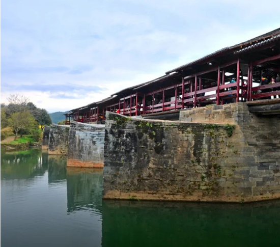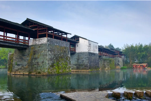 彩虹桥始建于宋代,它以李白的名句“两水夹明镜,双桥落彩虹”来命名,是古徽州最古老、最唯美的廊桥,被誉为““中国廊桥史上的绝版”“中国最美的廊桥”等,不仅曾一度入选邮票图案,更是各大影视、写生、绘画作品的“座上宾”,赢得了无与伦比的赞誉。2006年,彩虹桥被列为第六批全国重点文物保护单位,实乃当之无愧、众望所归。