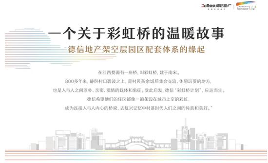德信与彩虹桥的缘分开始于2017年。彼时,德信以彩虹桥为灵感,以架空层为主要载体,集合所有年龄人群的社交、娱乐、休闲需求,用“彩虹桥计划”,让更有温度的社区生活在全国各地落地生根。经过几年的蓬勃生长,“彩虹桥”已经成为了德信温度生活的代名词。正是这份渊源,促使了德信此次‘彩虹桥共建计划’的实施。