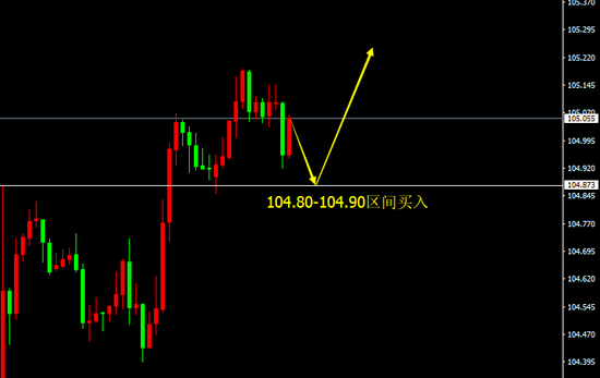 104.80-104.90区间买入,止损20点,目标105.10、105.30、105.50。
