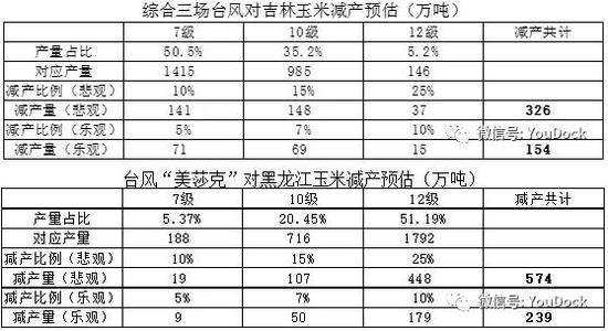 机构三:吉林省预计减产范围约150-330万吨,占吉林省总产量5%-12%;黑龙江省预计减产范围约240-570万吨,占黑龙江省总产量7%-16%。