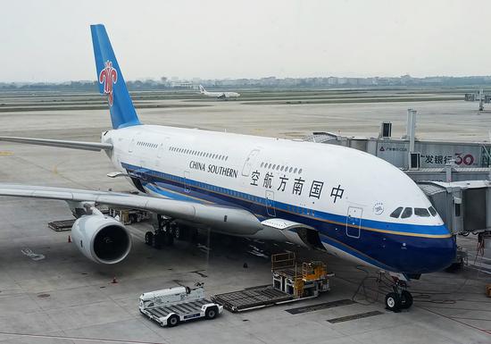 南航的空客A380。图片来源:每经记者 滑昂 摄