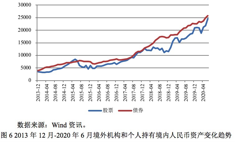 有观点认为,受外部环境不利变化的影响,国内资本流入可能减少,笔者并不赞同。根据Wind资讯的数据,截至2020年6月末,境外机构和个人持有境内人民币股票2.46万亿元,债券2.57万亿元,并且最近几年一直保持较强的资本流入趋势,甚至连中美贸易摩擦这种较强的外部冲击都未对其造成影响。尤其是考虑到中美息差在未来很长一段时间内仍将维持在高位,国际指数纳入境内股票和债券也将越来越多,国际投资者的资产组合中人民币资产的配置规模依然较低,再加上国际投资者越来越看好中国未来的发展前景,预计国际资本流入仍将在未来很长一段时间内维持较多的流入。资本流入增多也将给人民币带来支撑,有利于人民币未来进一步走强。