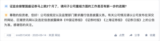 事实上,全市场对国盛证券的股东问题和股权结构可能出现的变化保持极大关注。投资者互动平台上,就有投资者对此频频提问。