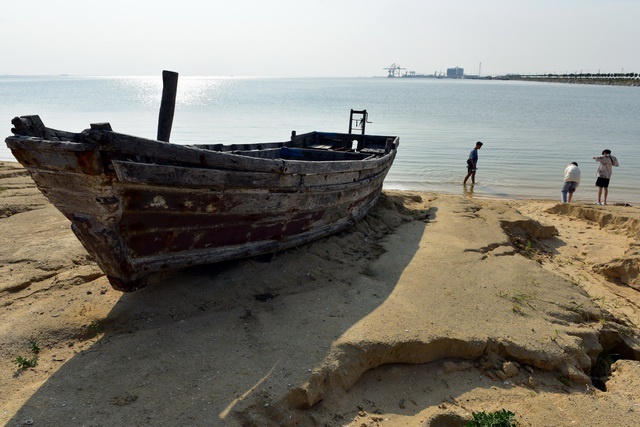 在莱州市朱旺村西侧岸线的岸滩,不少游客正在这里游玩、垂钓,村里的妇女们也在海边挖蛤蜊。朱旺村党委副书记杨景洲告诉第一财经记者,这里原本是一个乱石滩,垃圾遍地。渤海攻坚战实施后,莱州市投资5865.23万元,选取了三个岸线岸滩进行整治修复,朱旺村西侧岸线岸滩就是其中之一。
