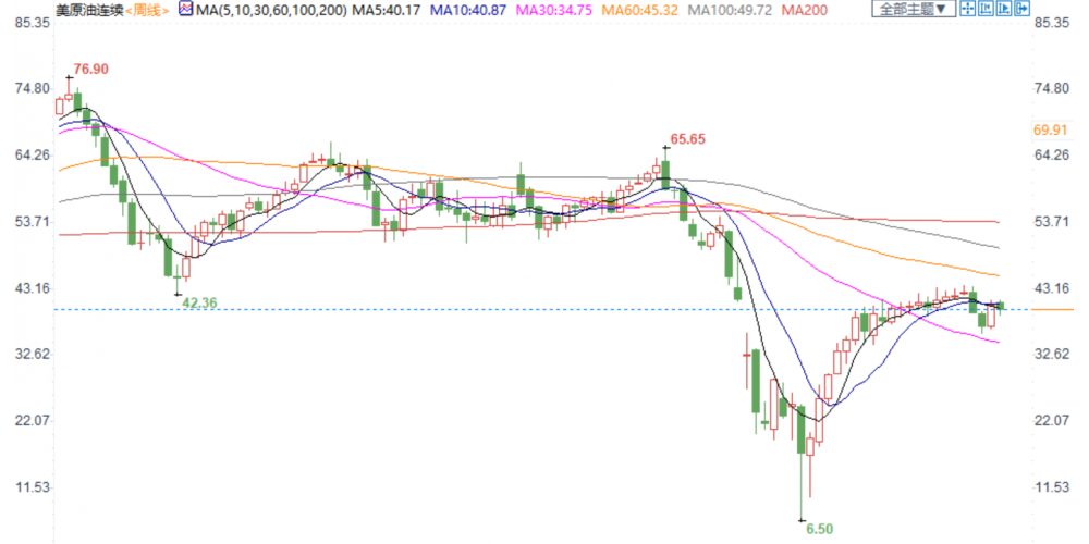 美原油最低触及38.87美元/桶,收报40.04,周线跌幅2.29%;