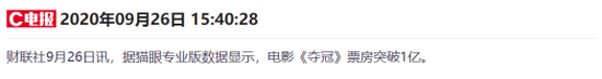 财联社(上海,研究员 姚辉)讯,昨天刚刚上映的电影《夺冠》票房破亿,国庆档大战提前开启,机构看好相关受益的上市公司。
