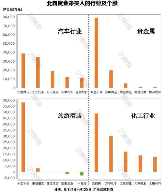 净买入行业中,汽车行业延续上周的良好态势,两周累计被净买入33.88亿元。本周宁德时代(300750.SZ)、长安汽车(000625.SZ)被普遍看好,合计净买入额超7亿元。