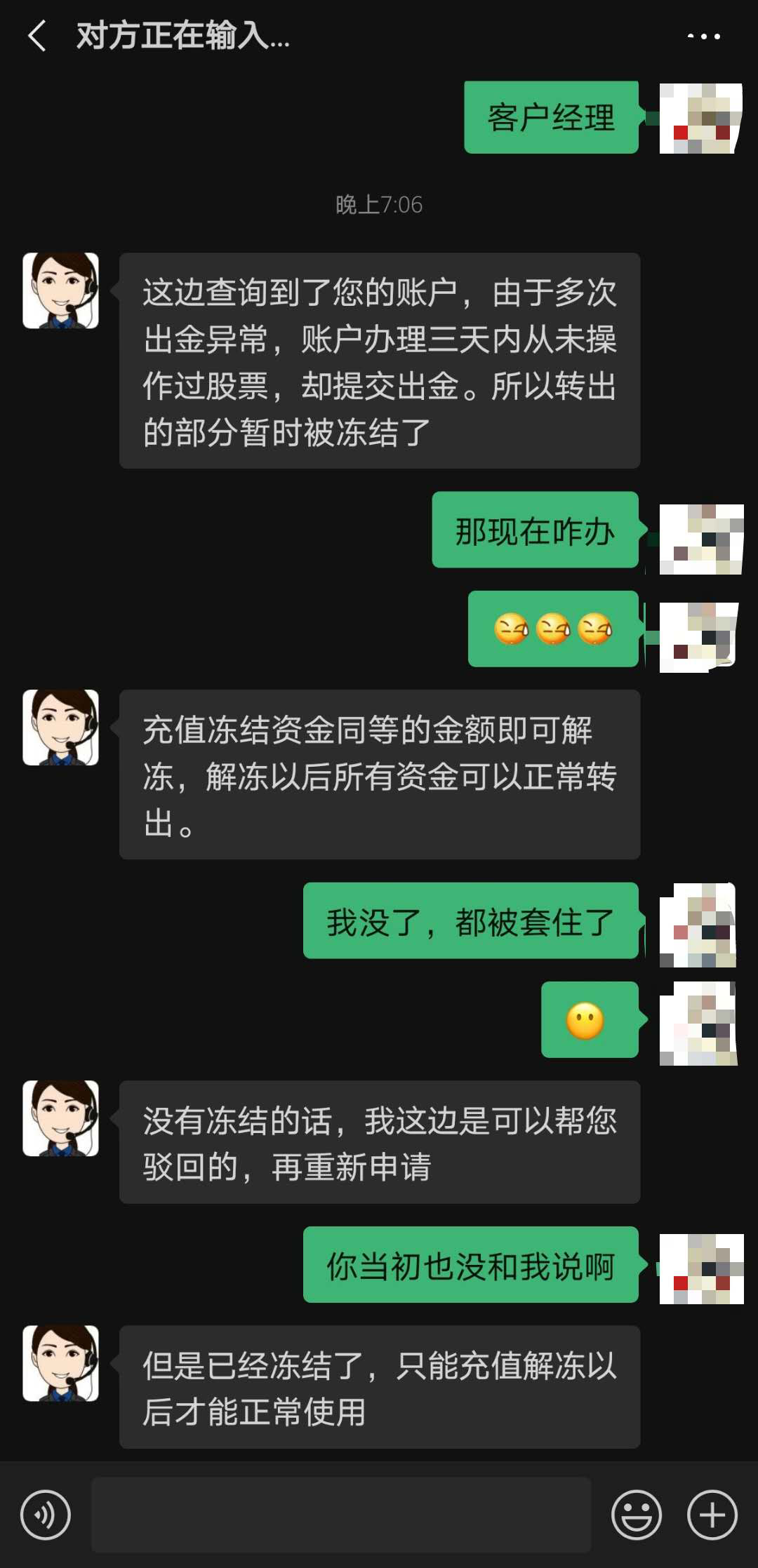 第五步,宰割。骗子以“T+1”规则、担保比例等为借口,告知受害者不能提现,并诱导受害者逐次投入大笔资金,最终收网。