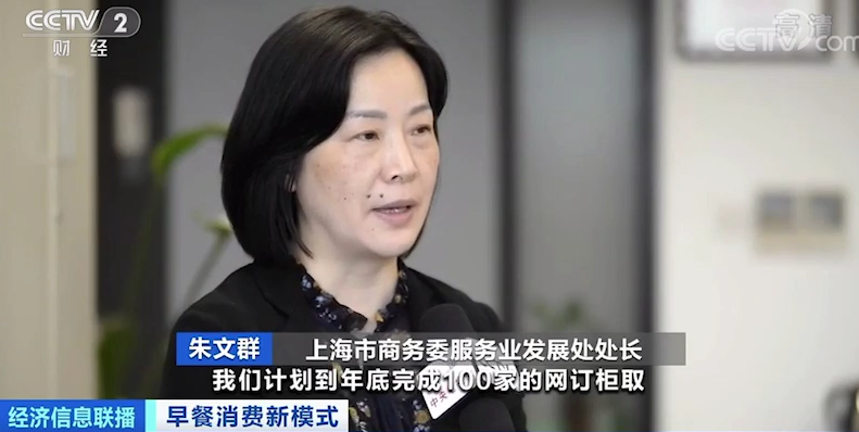 上海市商务委服务业发展处处长朱文群:我们计划到年底完成100家的“网订柜取”,其中包括多种业态,比如便利店加早餐服务的“网订柜取”、超市加早餐服务的“网订柜取”、传统早餐门店加上早餐智能柜的模式。