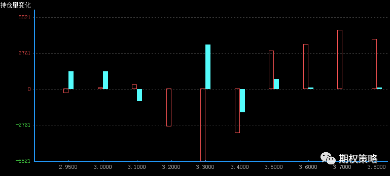 从10月持仓分布来看,仍是认购在3400处持仓最大,认沽在3300处持仓最大,50ETF中期支撑压力不变。