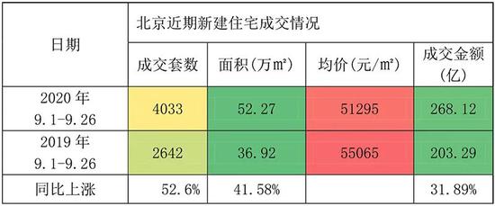 据中原地产研究中心统计数据显示,截至9月26日,北京新房成交4033套,成交面积52.27万平方米,分别同比上涨52.6%、41.58%。中原地产首席分析师张大伟表示,“北京市场连续调整多年,整体上看,较之其他一线城市已基本见底。因此,随着不限价项目入市增加,市场活跃度上涨。”