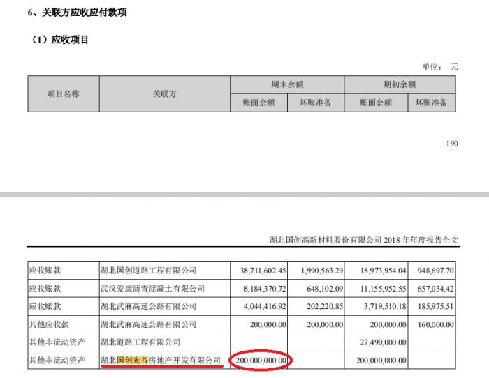 更匪夷所思的是,国创高新2018年年报中,关联方应收应付款项”的“应收项目”中的涉及国创光谷地产的“其他非流动资产”期末余额又变成了2亿元。