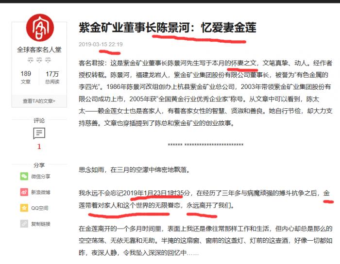 据了解,陈景河并非初婚,其发妻赖金莲2013年1月因病去世,陈景河曾专门发文悼念爱妻!