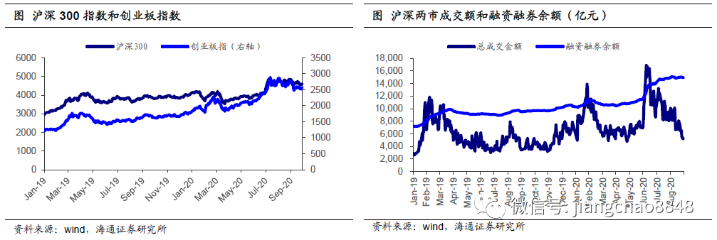 向上趋势不变。9月权益市场调整,成交额降至三季度以来的低点,市场情绪降温。节前观望情绪较浓,而总体来看,基本面修复态势延续,单二季度多数行业盈利回升,在周期及政策等因素推动下预计基本面继续回暖,宏观流动性数量上依旧充裕,微观流动性方面,今年在房住不炒和股权融资大发展的背景下居民资产配置有望进一步转向股市。中期来看向上的趋势不变,而临近美国大选,海外因素或产生短期扰动。