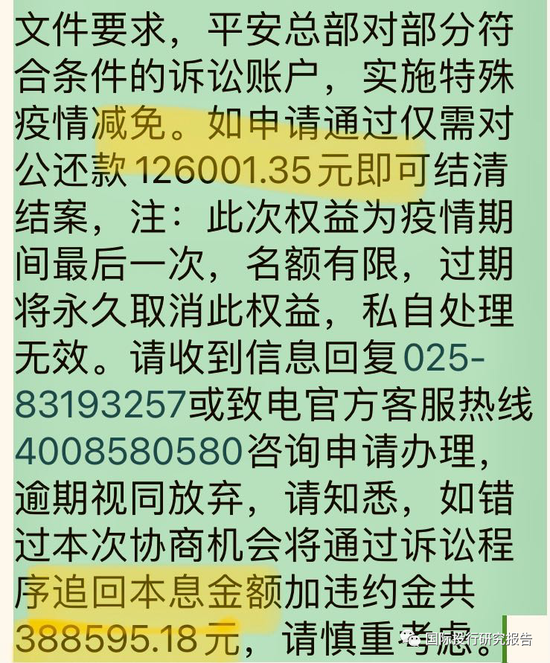 随便看一下几个投诉网站,关于平安普惠的投诉不胜枚举,不过IPO说明书表示自己没受过什么处罚,难道这些都是假的?还是主管部门都没去管呢?凌通社获得的一个真实案例,一个哥们借了平安普惠20万,还到还有12万的时候因为各种原因没还,然后就是平安普惠员工通过电话催讨和威胁,电话威胁甚至打到了他爱人那边(日本人),这哥们因此报案并要求日本领事保障。奇妙的时,平安普惠前段时间给他发了一个“减免通知”,说根据中国人民银行等文件要求,可以减免,只要结清还12万就可以否则其实要求38.8万!