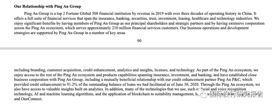 招股说明书显示,事实上大家熟悉的平安普惠也不是中国内地的公司,其母公司注册在开曼群岛,然后在开曼群岛又注册一家子公司,子公司在香港成立一家H开头的公司,这家H公司又在IPO说明书在论述“我们和平安集团的关系中”称平安是“主要股东和战略合作伙伴”,“作为平安生态系统的一部分,我们享有平安保险生态系统的其余部分以及涵盖保险,投资和银行业务的产品功能,并已与平安集团建立了紧密的业务合作关系,”