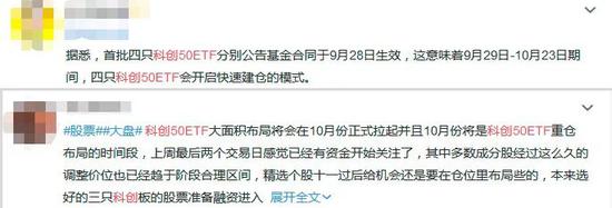 自四只科创50ETF基金9月28日成立以来,科创50指数便开始节节攀升。9月30日,四只基金净值纷纷向上变动,暗示着建仓行动已经开始。业内人士预计,随着10月投资的正式启航,这些基金的建仓有望继续有序推进,短期或对科创50指数起到一定利好作用。社交平台上也有不少投资者对此予以了较大关注。