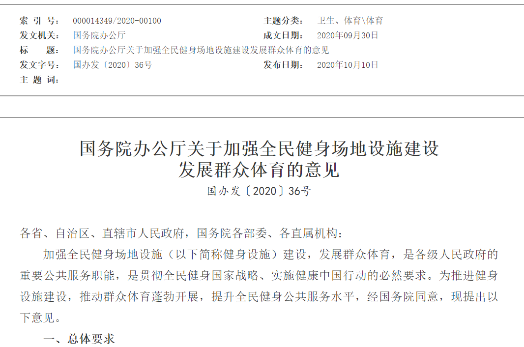 一直以来,场地、设施是制约全民健身形成氛围、循环的最大制约,也产生了一些广场舞、篮球爱好者冲突的矛盾,社会亟需一套规则,发展健康、有序的全民健身。根据实际情况,《意见》从土地、建设、运营、活动组织、渠道、标准等多个层面发展群众体育,提出完善大型体育场馆免费或低收费开放补助政策,支持体育场馆向社会免费或低收费开放;推进“互联网+健身”。
