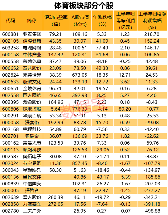A股体育产业公司主要从事体育器械和运动装备的生产制造,而附加值更高的体育服务和赛事版权运营,由于盈利模式尚不清晰,在资本市场上仍不多见。市场表现来看,分化较为明显,有些公司年内涨幅超过50%,也有公司目前股价低于年初。