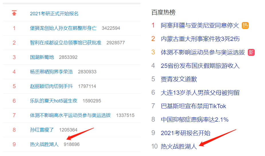 鉴于湖人队3:1领先热火队,本场再次获胜就将赢得总冠军,很有可能本场比赛也是NBA今年的最后一场正式比赛(最终结果为热火队获胜扳回一局,最少还有1场NBA待播)。从某种角度来看,这个时点选择复播NBA,象征意义更大。而热火战胜湖人也很快成为各大平台热搜词。