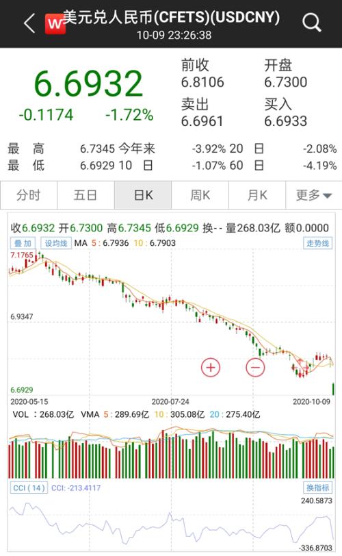 如果时间再往前看,今年5月底以来,人民币兑美元汇率持续走强。Wind数据显示,2020年5月27日,人民币在触及7.1765的低点后一路反弹,至10月9日触及6.6929的阶段高点,期间最高反弹已超4800点,升幅6.73%。