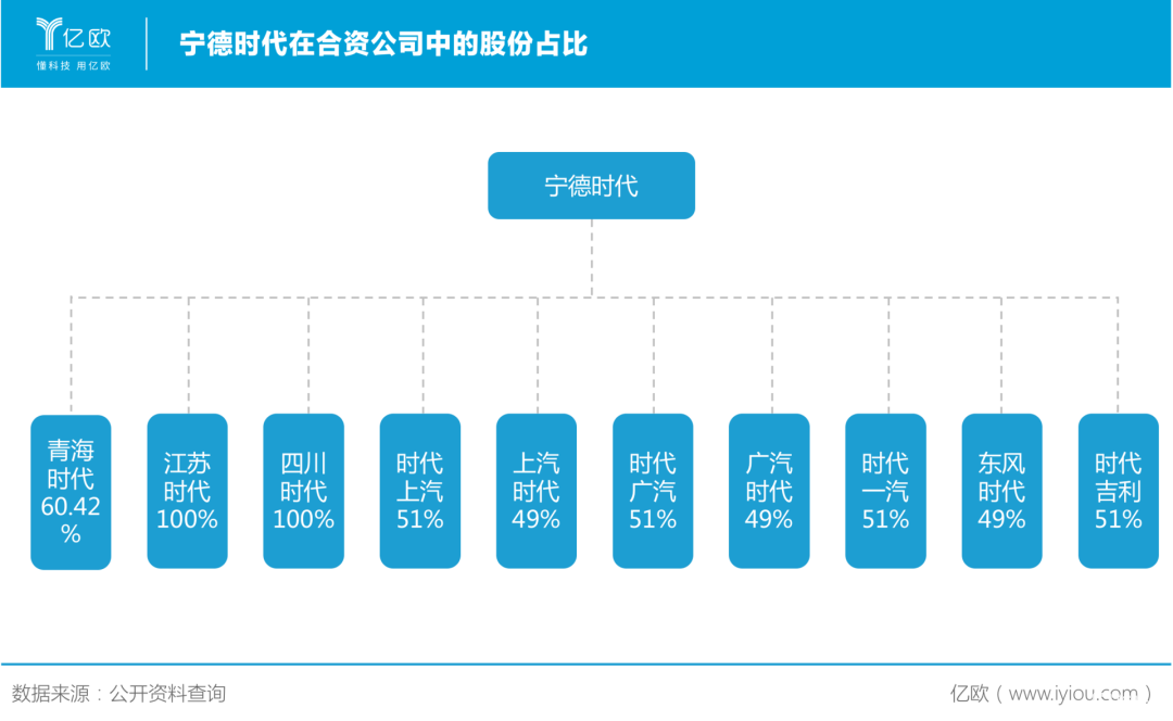 目前,一汽、广汽、东风、吉利、上汽等多家车企采用与宁德时代成立合资公司的方式进行合作。其中,宁德时代在与一汽、吉利成立的合资公司中,占股51%,拥有控股权。