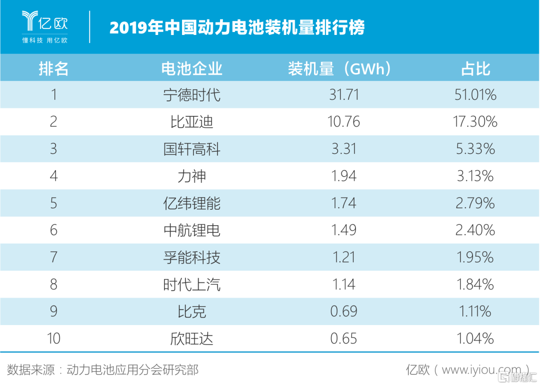 位居第二位的比亚迪占比仅为17.3%,第三名国轩高科的占比则是个位数。国内动力电池领域的马太效应越来越明显。