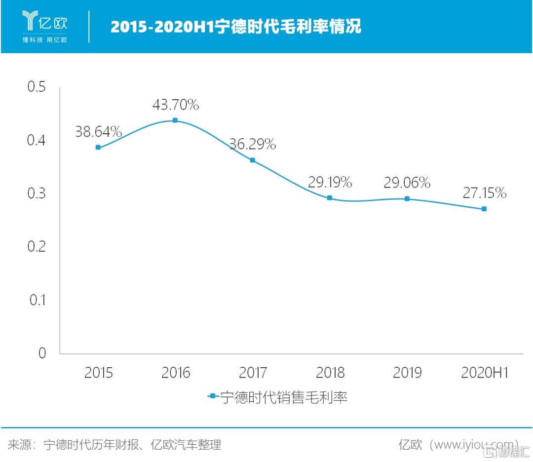 此前,宁德时代连续三年下滑的动力电池系统毛利率,也引发市场看衰。2017年,其毛利率为35.25%,同比下降9.59%。随后两年,该数字再次下滑1.15%和5.65%。今年上半年,主营业务动力电池系统的毛利率继续下降了2.38%。