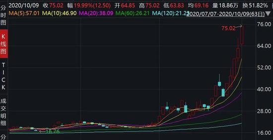 整个9月份,新余国科股价涨幅高达197.43%,期间收获7个涨停板。国庆假期结束后的首个交易日,新余国科再度涨停,收盘价75.02元,换手率高达51.10%。从9月以来,新余国科累计涨幅超过2.5倍!事实上,如果从8月21日股价上行开始计算的话,新余国科在不到两个月时间内,涨幅已经高达3倍。