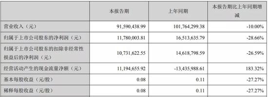 新余国科此前披露的半年报显示,今年上半年,归属于上市公司股东的净利润1178.00万元,同比减少28.66%;归属于上市公司股东的扣除非经常性损益后的净利润1073.16万元,同比减少26.59%。