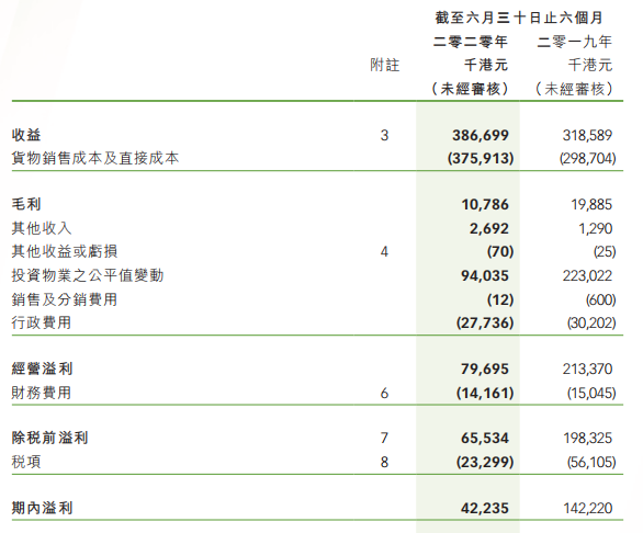 在今年9月29日发布的2020年中期业绩显示,该集团期内收益为3.87亿港元,同比增长21.37%;但毛利仅为1078.6万港元,同比减少45.8%;公司拥有人应占期内溢利为4247.5万港元,同比减少70%。
