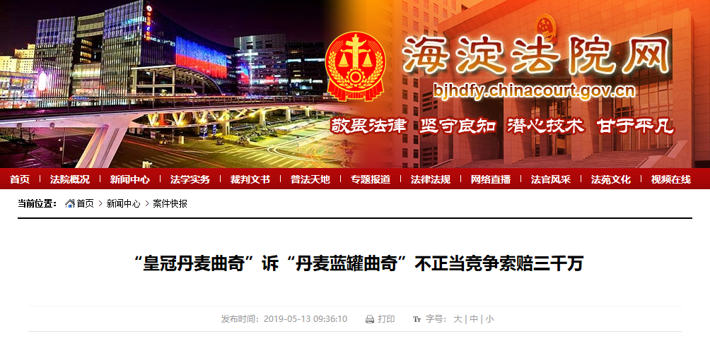 然而,在2019年5月,北京海淀法院曾刊出消息,反过来,“皇冠曲奇”起诉“蓝罐曲奇”索赔3000万元,理由同样为不正当竞争。