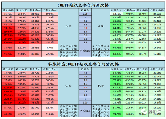 认购大涨,获翻倍收益。今日在标的上涨、隐含波动率上升的双重作用下,认购期权大幅上行,虚值认购涨幅最高,价格普遍上涨数倍,其余认购也获接近翻倍收益。认购期权在大涨行情中的丰厚收益得到充分体现。